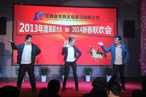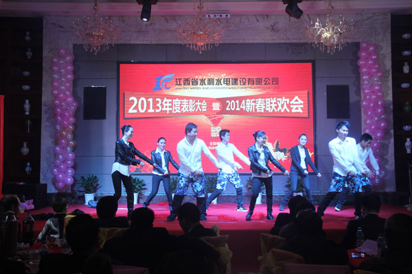 聯歡會文藝表演在舞蹈《中國夢,我的夢》中拉開帷幕,歌曲聯唱、朗誦、小品、情景劇、激情熱舞等文藝節目先后上演,精彩的表演引來了全場掌聲雷動,充滿了歡聲笑語。新的一年開啟新的希望,新的征程承載新的夢想,《水利人的一天》、《贊美水利、走向世界》等篇章抒發出江西水建兒女迎著水利春天的腳步,肩并著肩,手牽著手,一起為公司和個人的美好明天努力奮斗的壯志與豪邁!